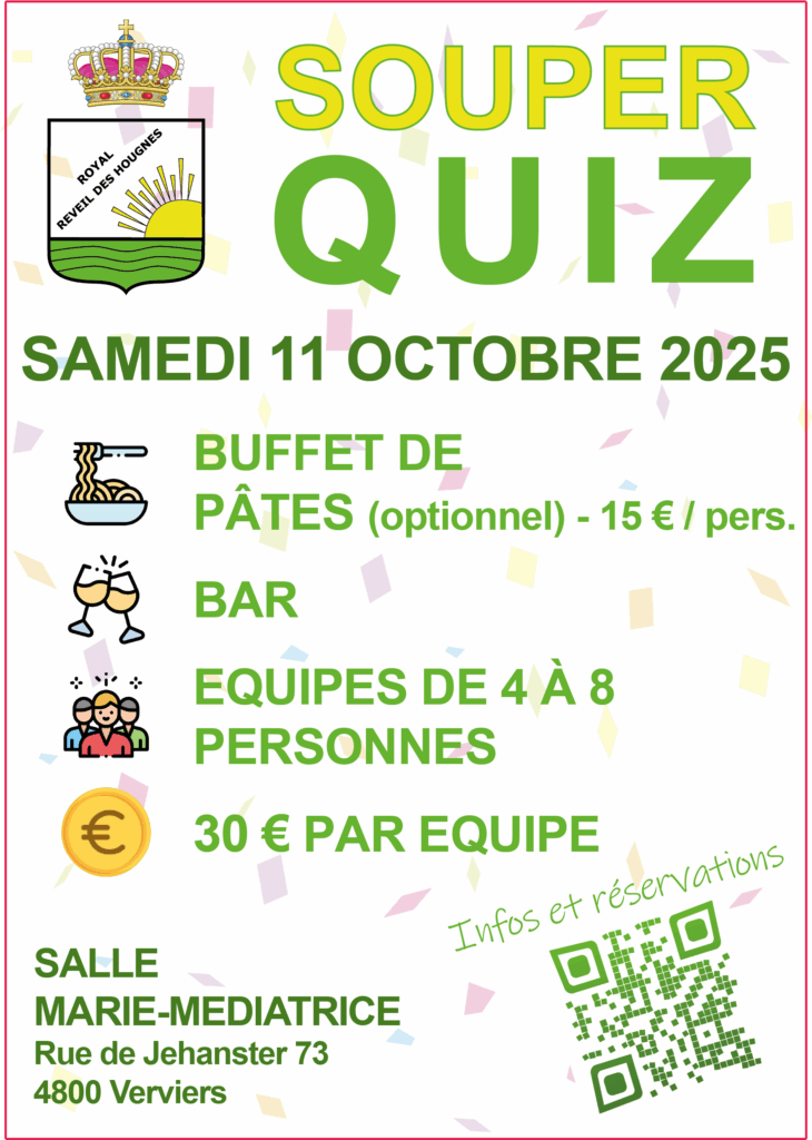 Cette année, le Royal Réveil des Hougnes innove : le traditionnel souper laisse place à une soirée conviviale sous forme de grand Quiz.